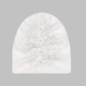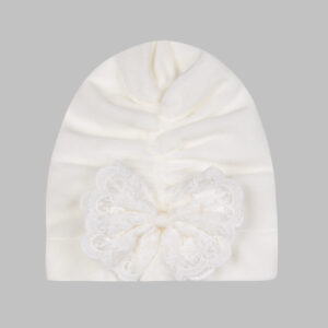 TURBANIK OCIEPLANY KORONKOWY BIAŁY Z APASZKĄ