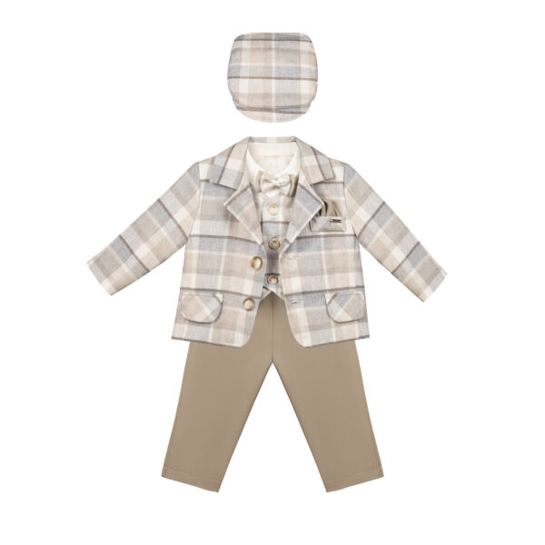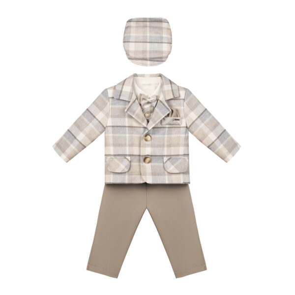 Garnitur Michael to niezwykle elegancki garniturek chłopięcy do chrztu, wykonany z najlepszej jakości materiałów. Oferowany przez nasz sklep z ubrankami dla dzieci 5 częściowy komplecik do chrztu cechuje się niezwykłą dbałością o detale. Garnitur w kratę na chrzest dla chłopca niemowlaka tworzą takie elementy jak: